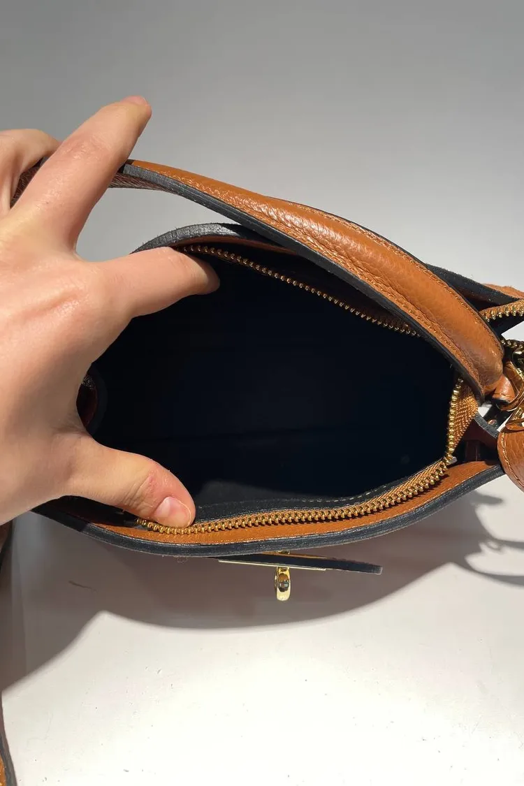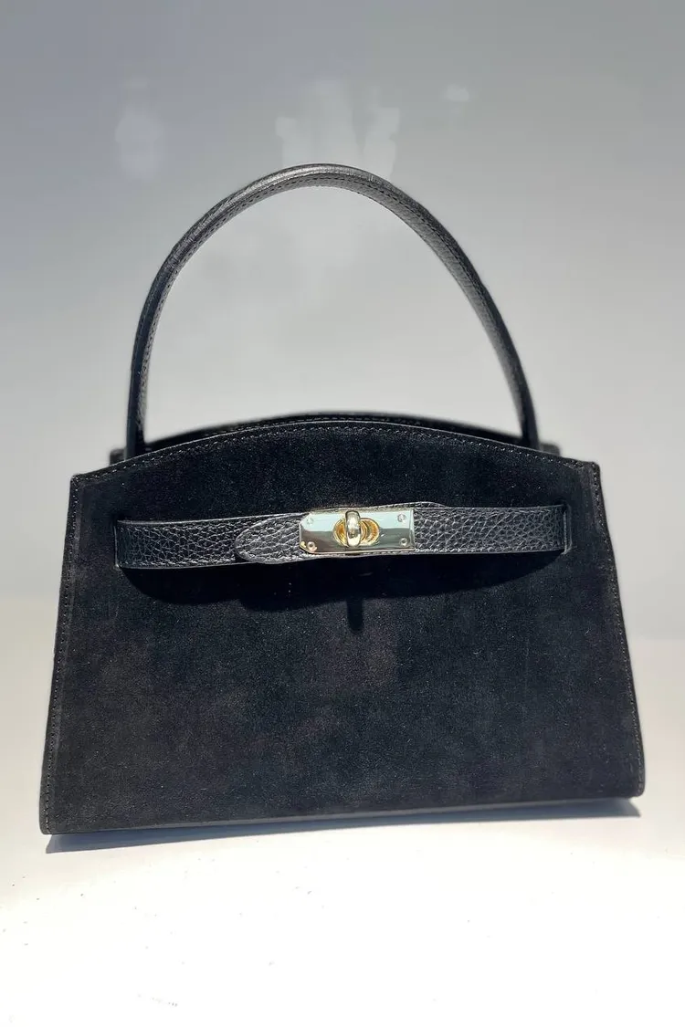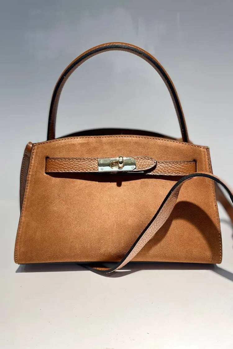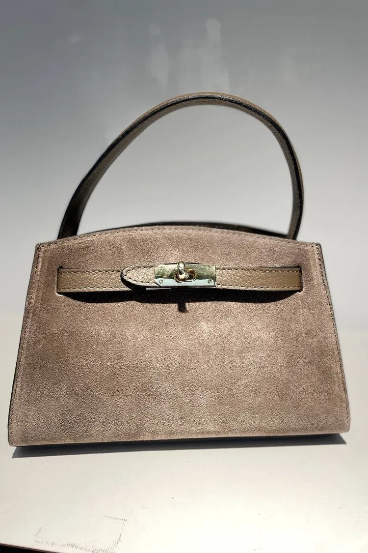 義大利真皮件-麂皮鎖釦手提包