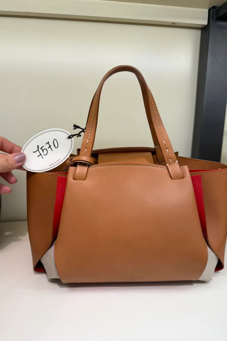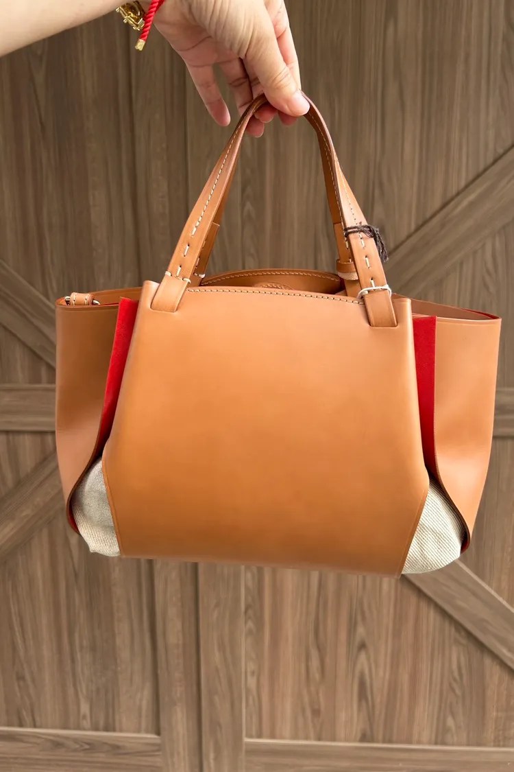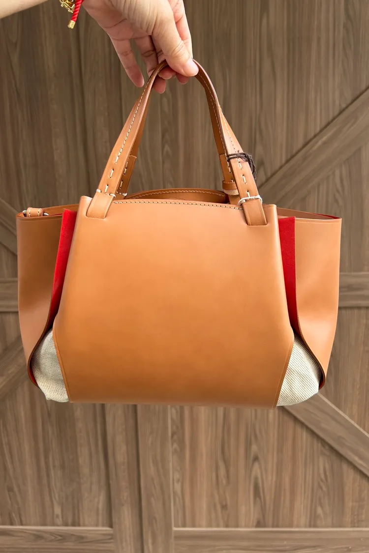 商品材質:植鞣小牛皮拼接帆布