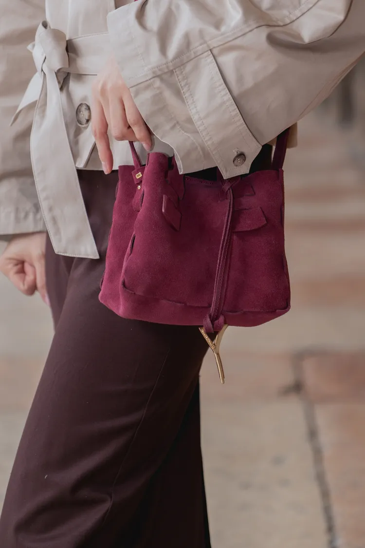 V04-ELENA訂製-麂皮系列 拼接皮提包-小