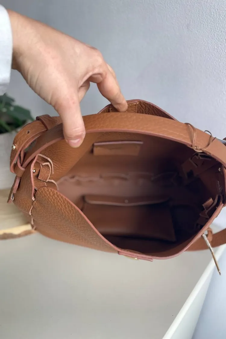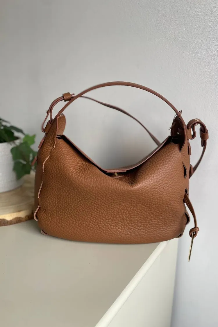 V06-ELENA訂製-真皮系列 卡榫月亮包-中