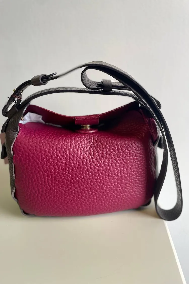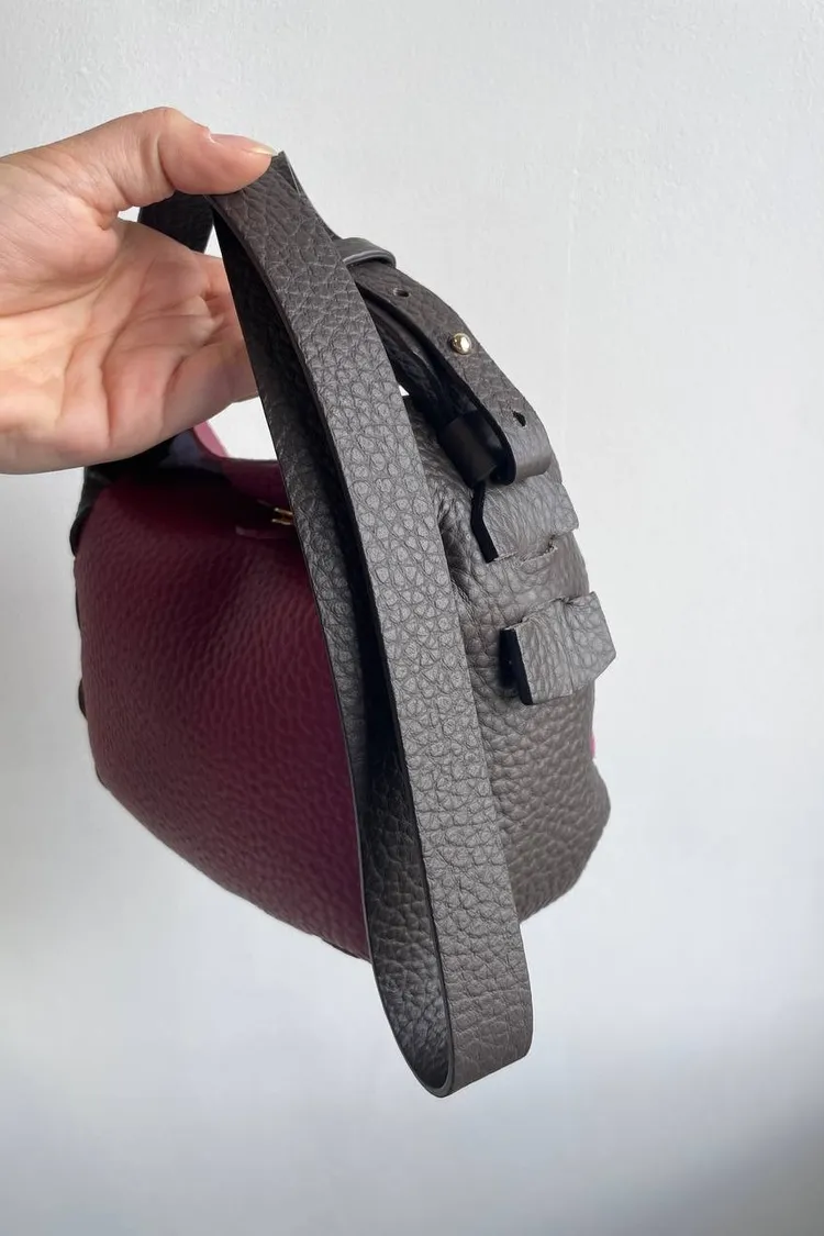 皮革小牛皮-作荔枝皮紋,包包所附吊飾像鑰匙,原用途是設計師幫鞋品牌設計用來改變鞋跟高度,後延用於自身同名品牌包