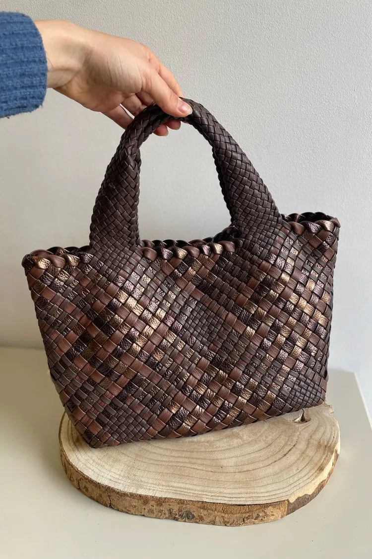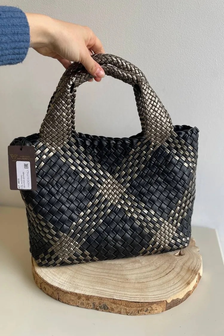 G04-GHIBLI訂製-雙提把編織橫式手勾包-金屬色