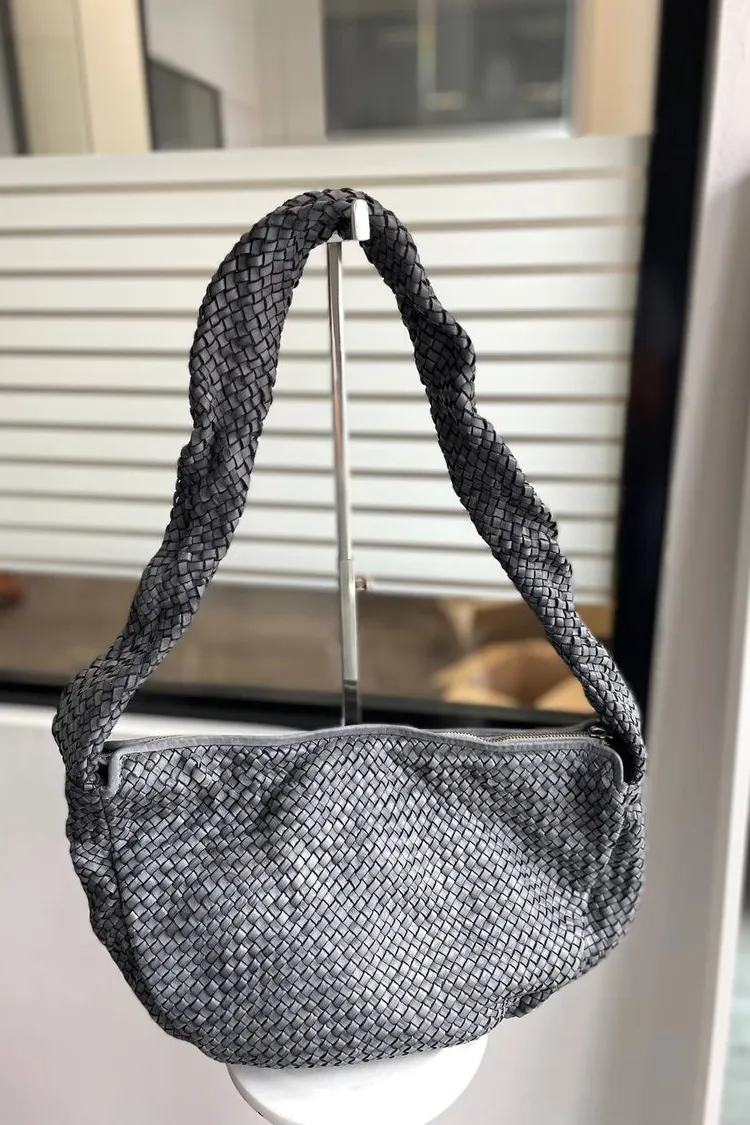 義大利真皮件-編織半月流浪包