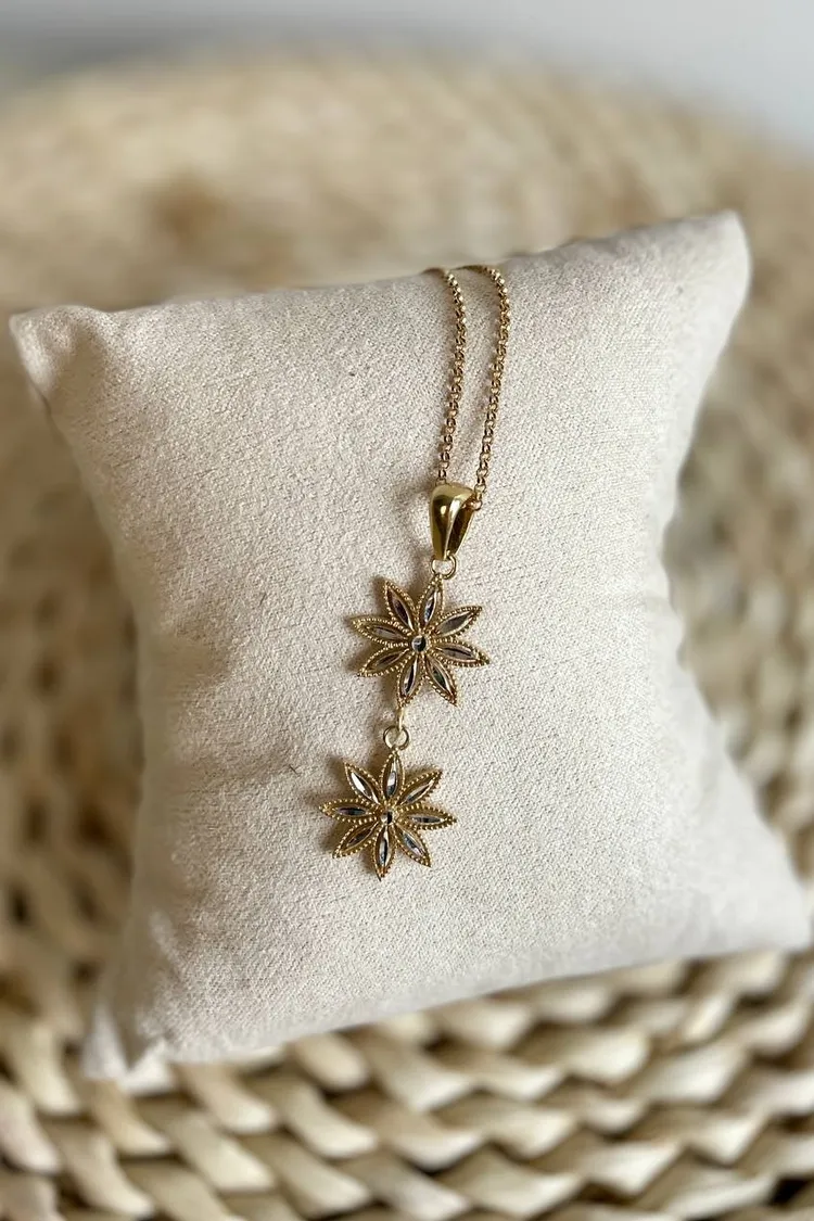 義大利鏤空琺瑯飾品-雙雪花項鍊