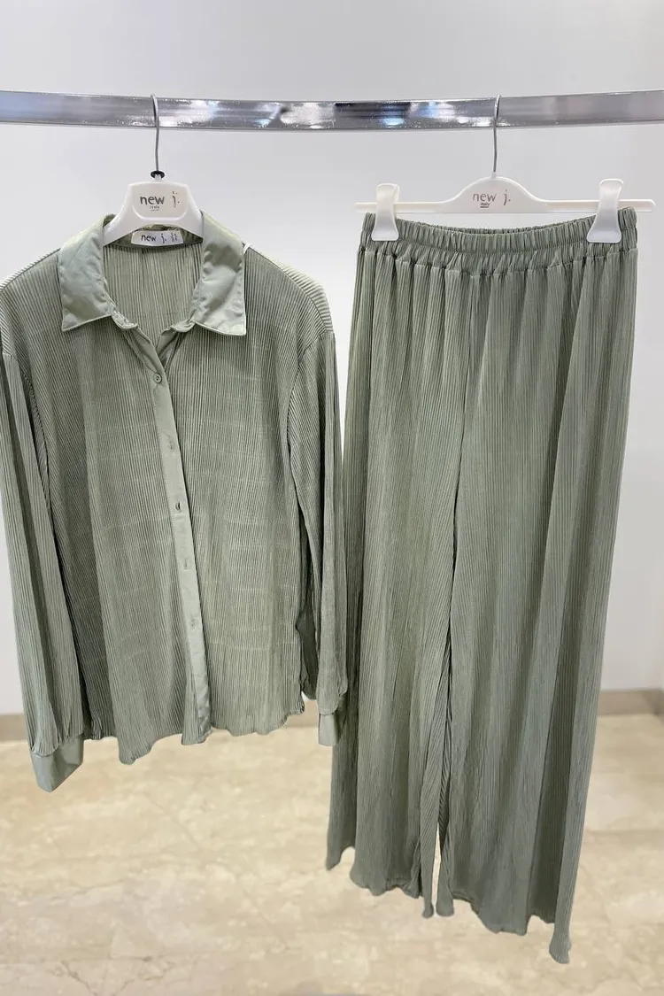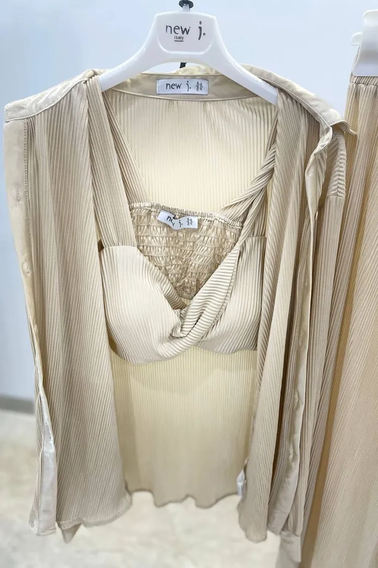 NJ服飾-小背心+細百摺上衣+長褲