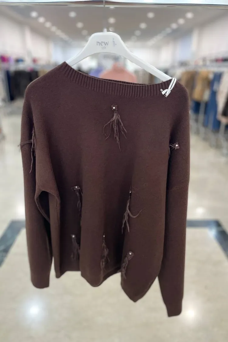 NJ服飾-羽毛點點羊毛上衣