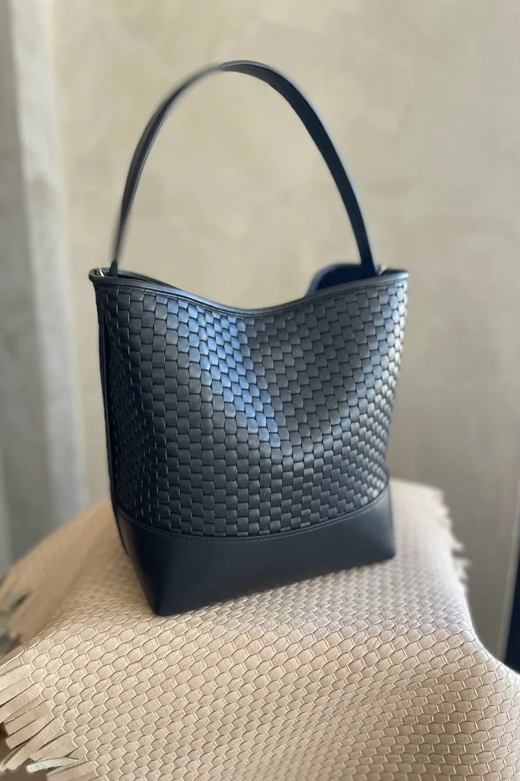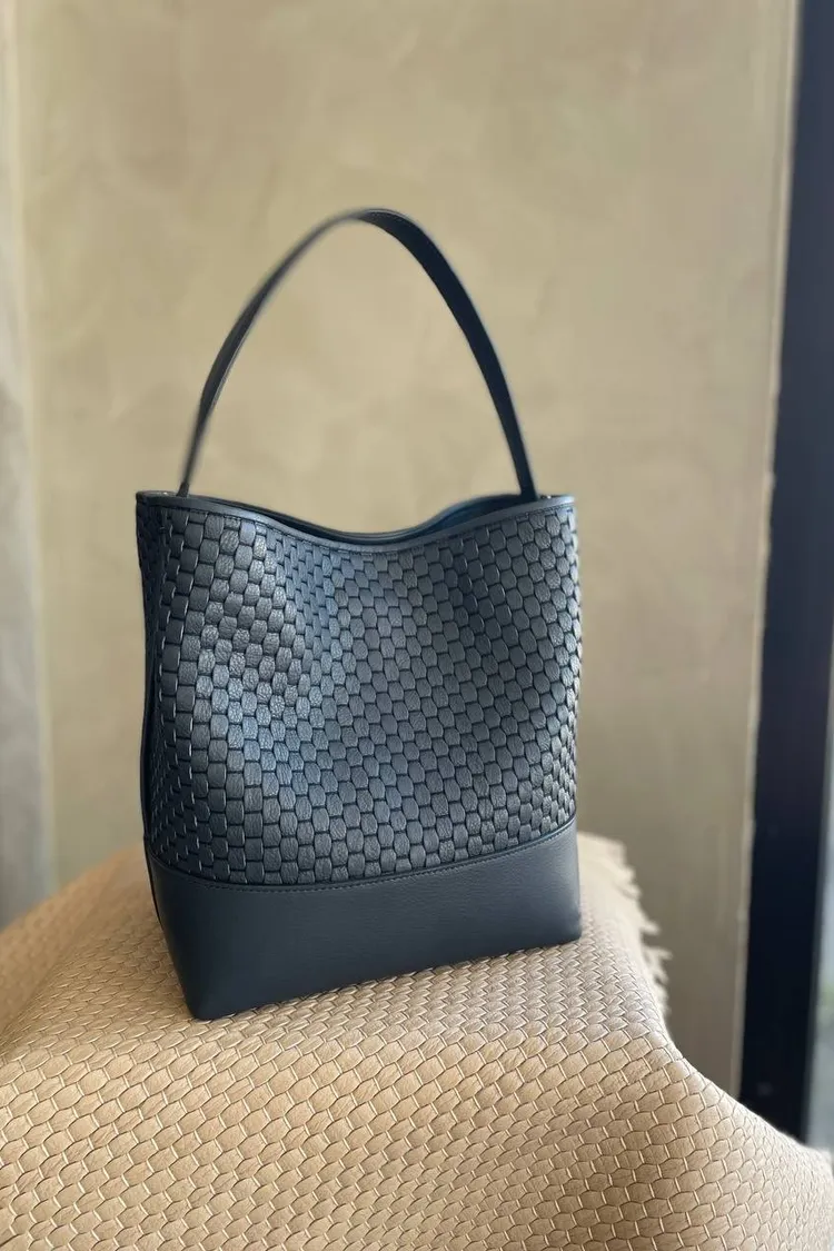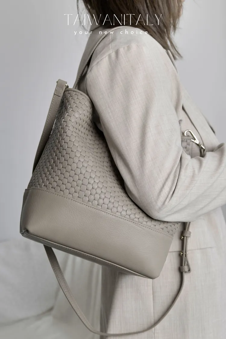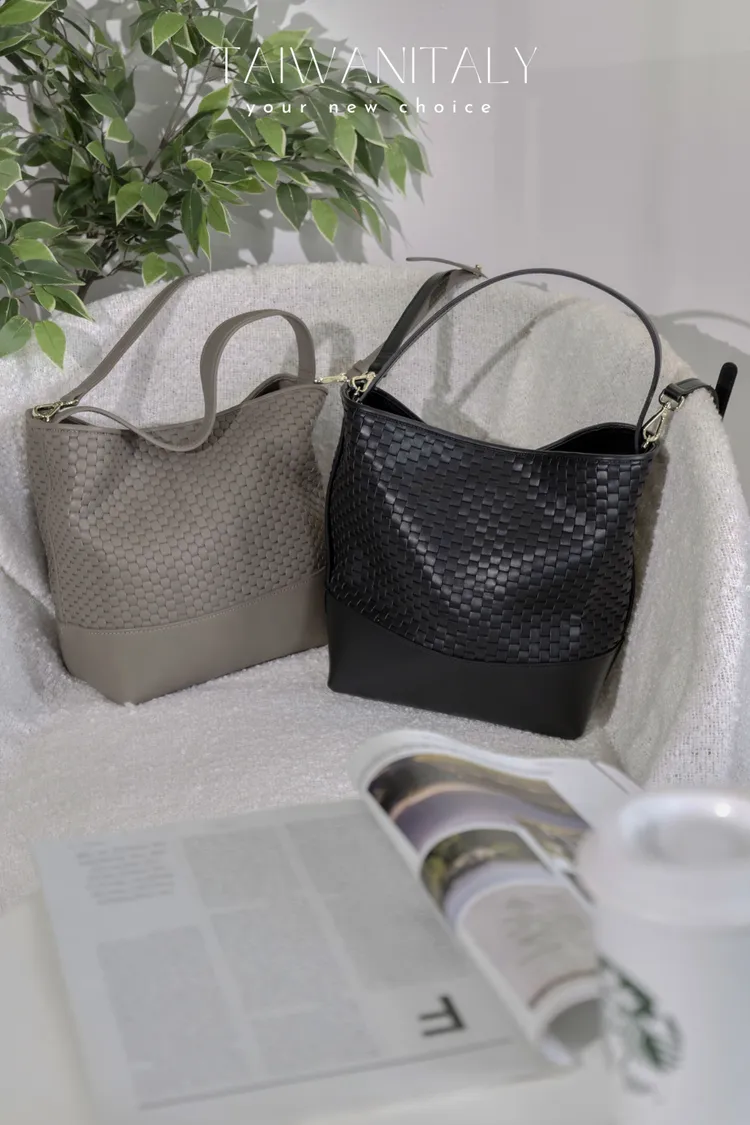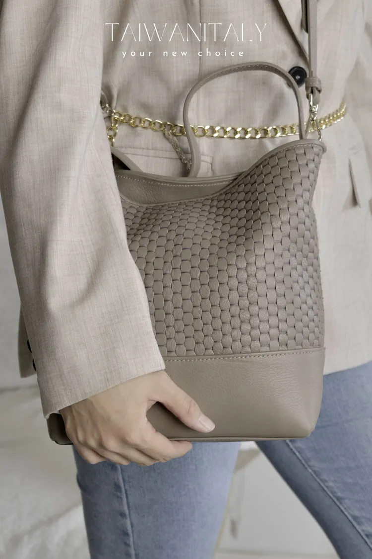 P06-PARISE皮件-雙用編織水桶包-中款單色