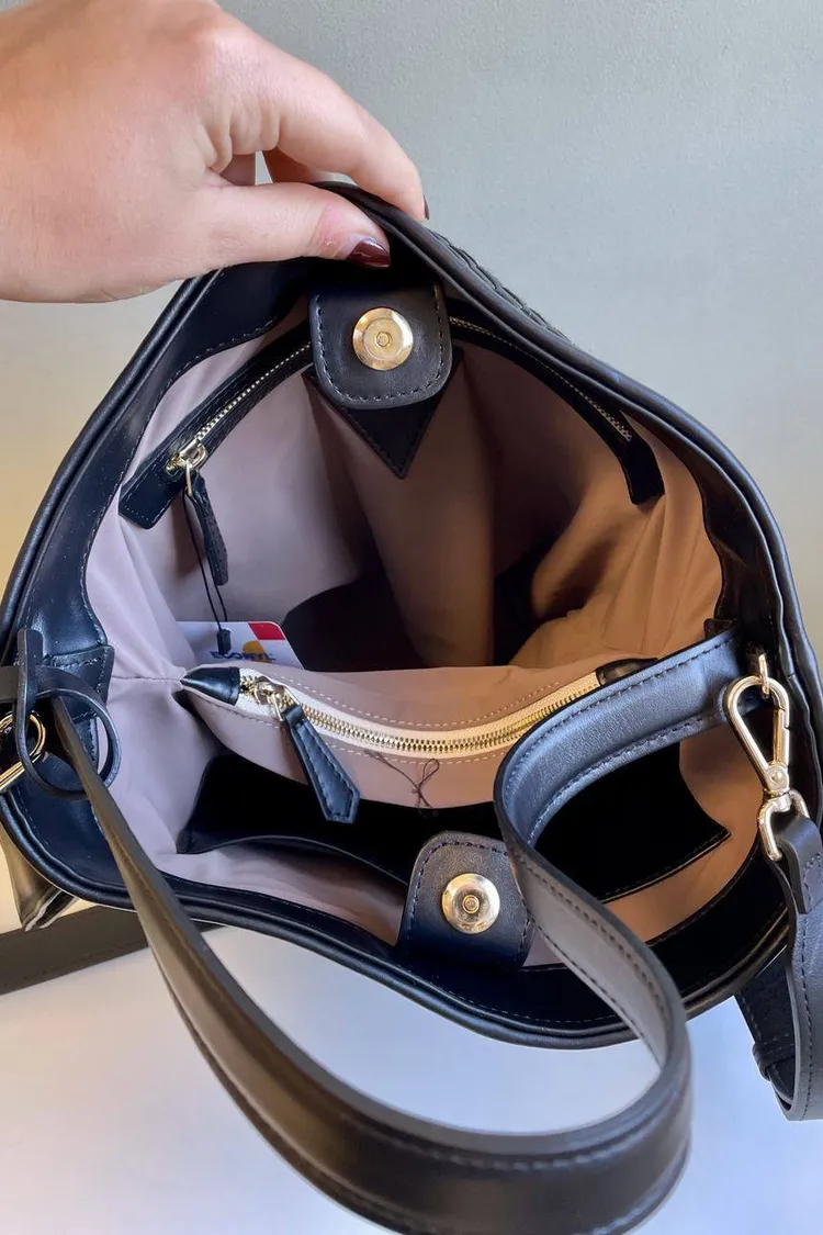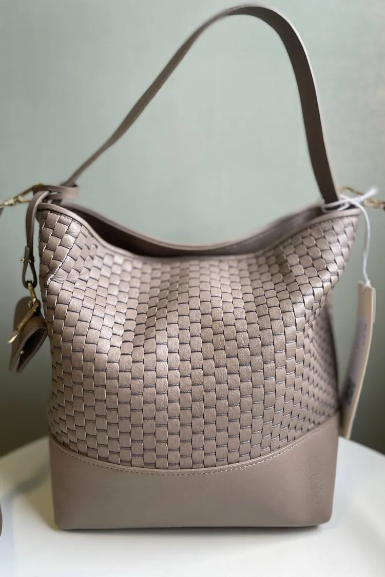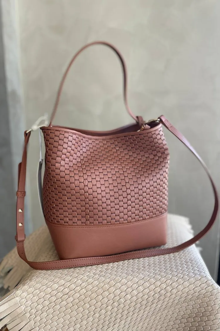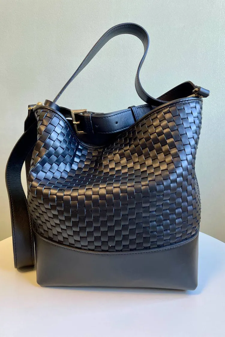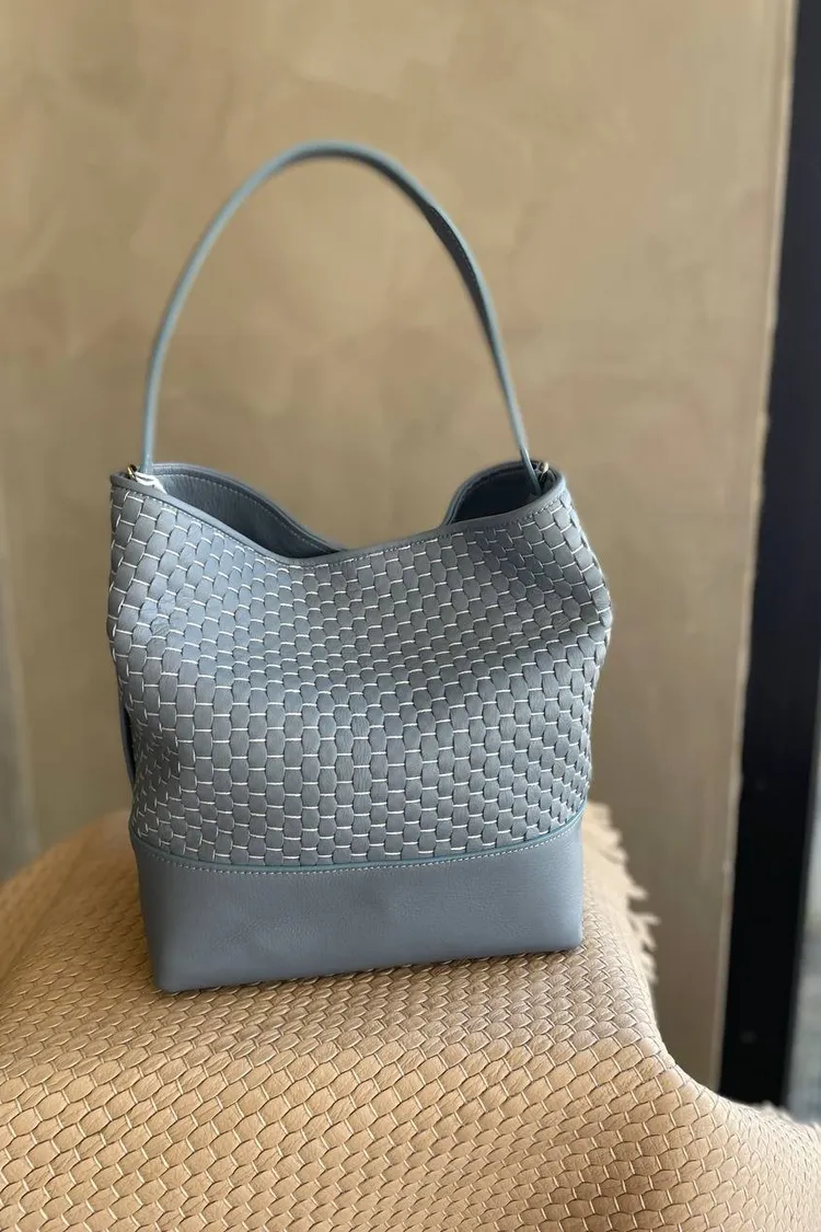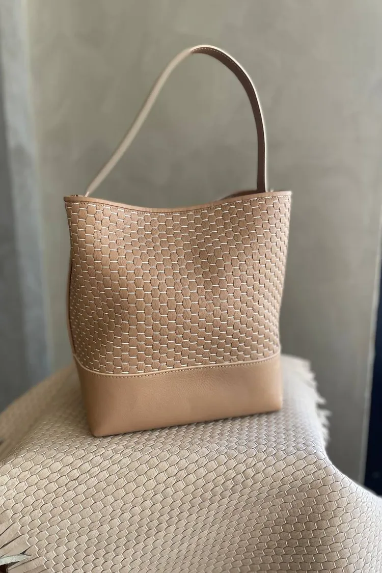 P06-PARISE皮件-雙用編織水桶包-中款單色
