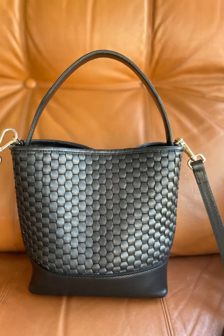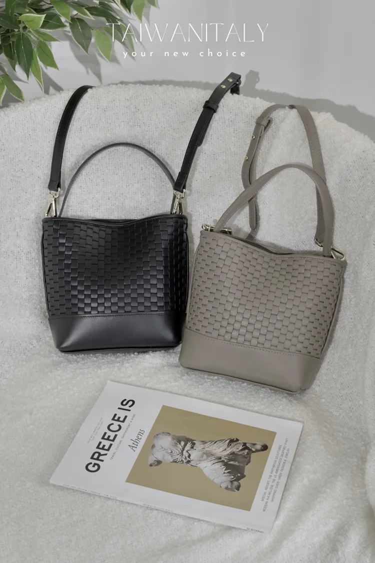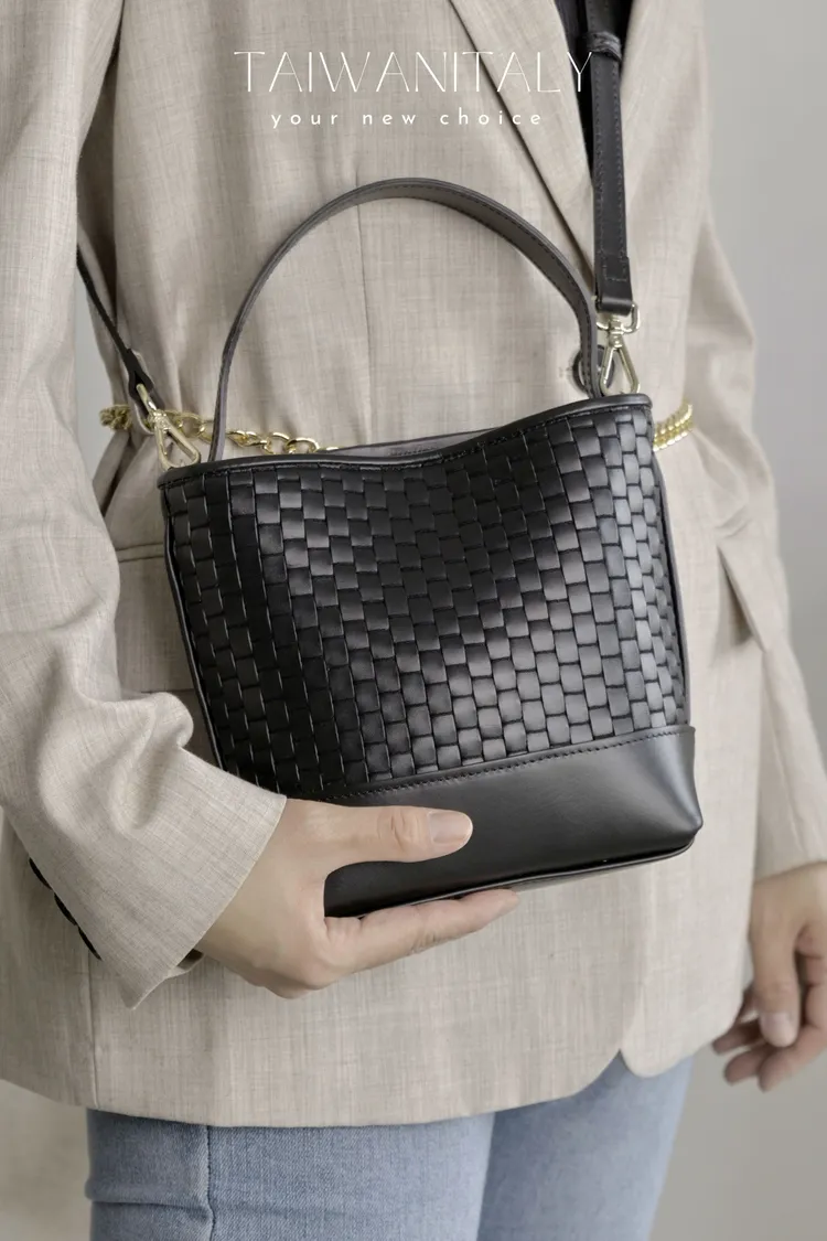 P07-PARISE皮件-雙用編織水桶包-小款單色