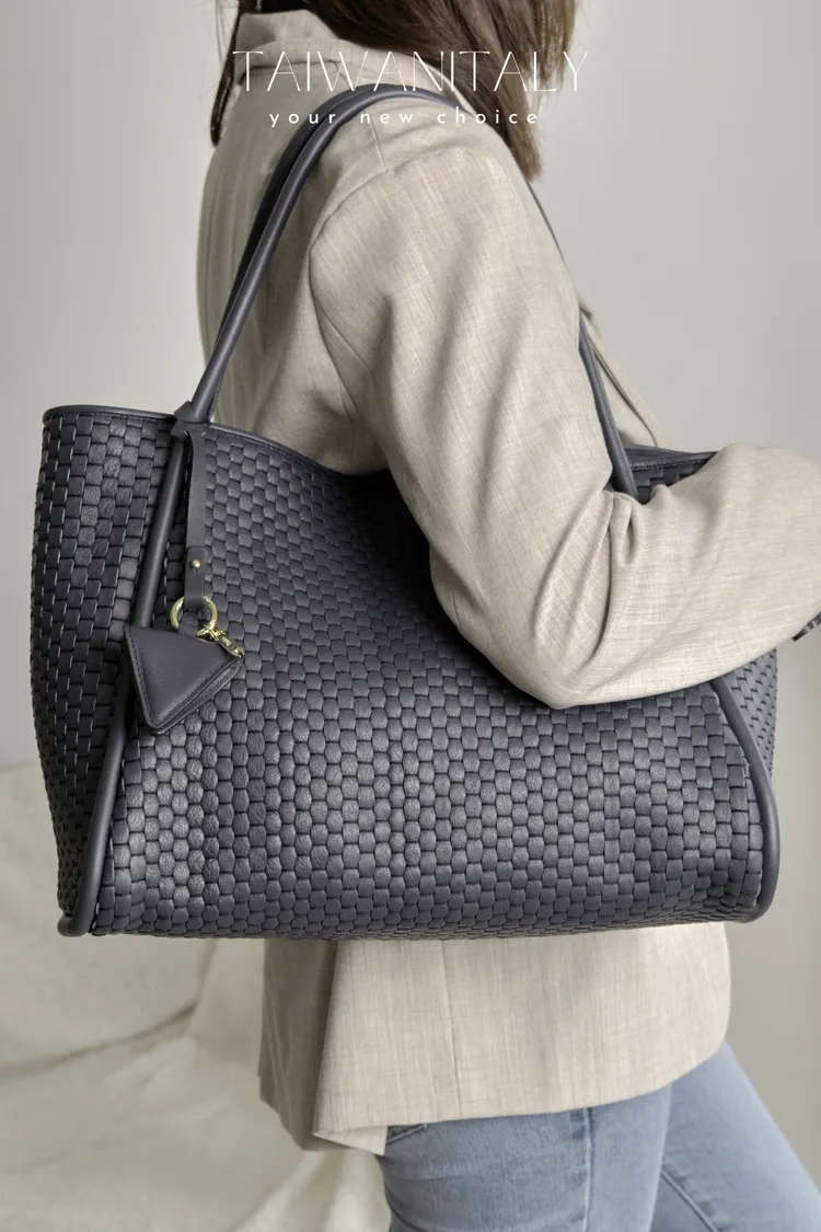 P15-PARISE皮件-一體油邊橫式編織包-中款