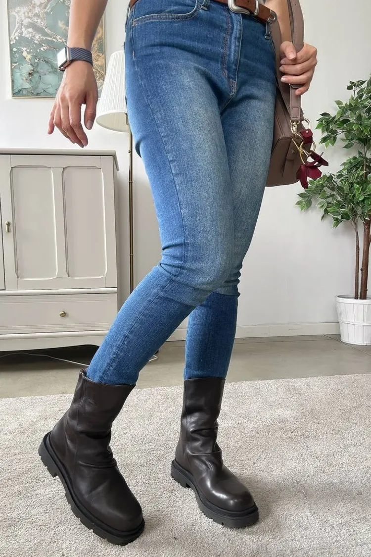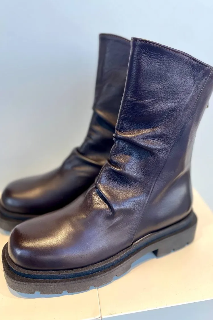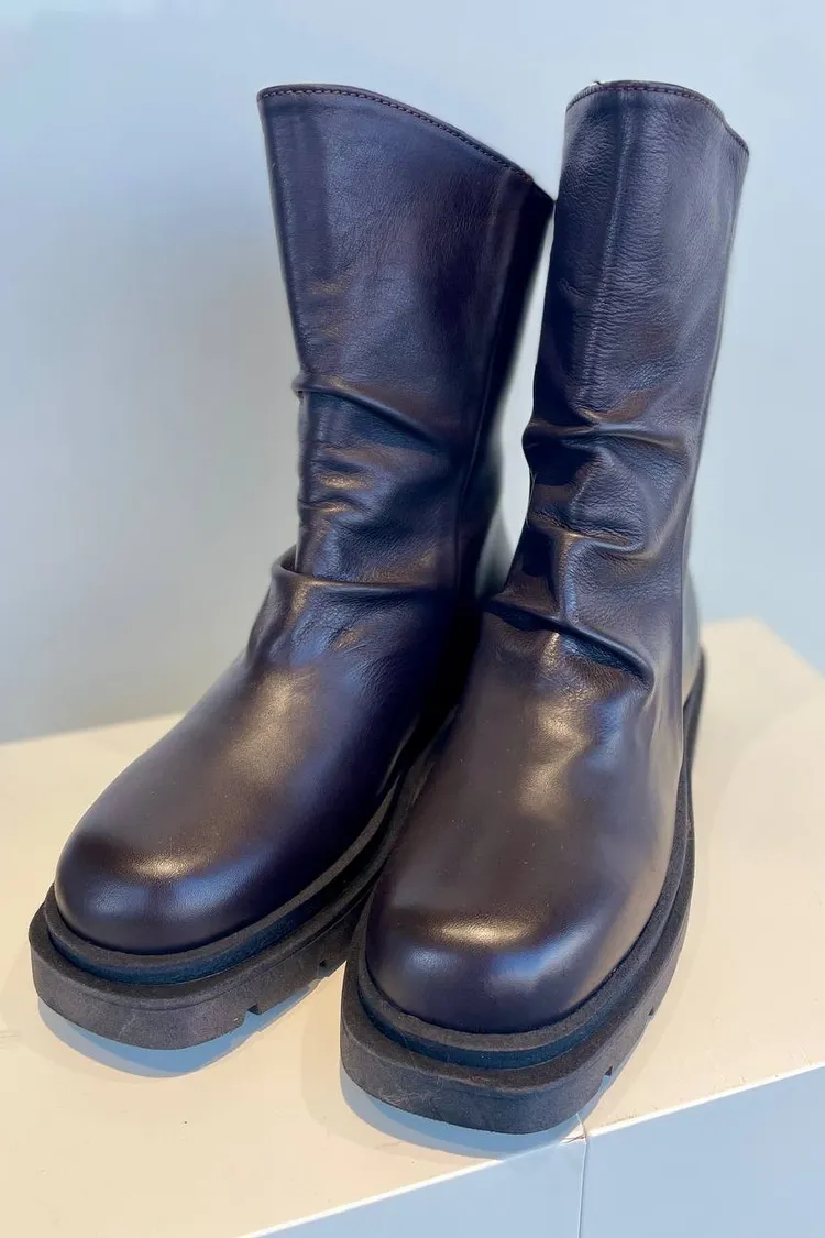 P01-義大利真皮鞋-斜口抓皺中筒靴