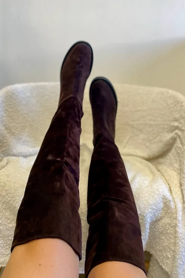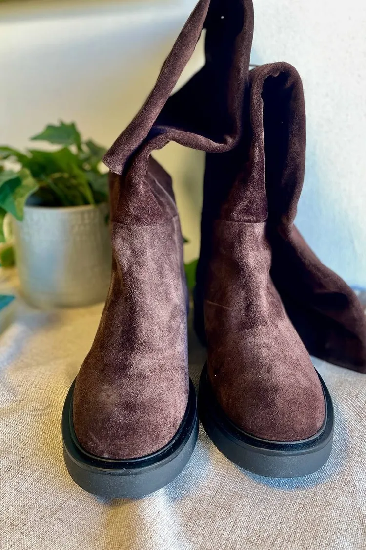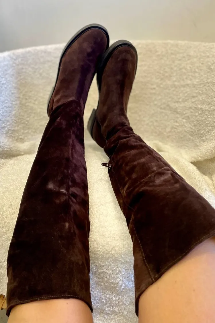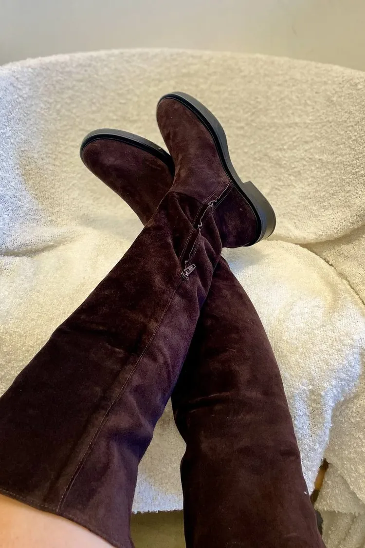 W07-義大利真皮鞋-山羊麂皮平底過膝靴