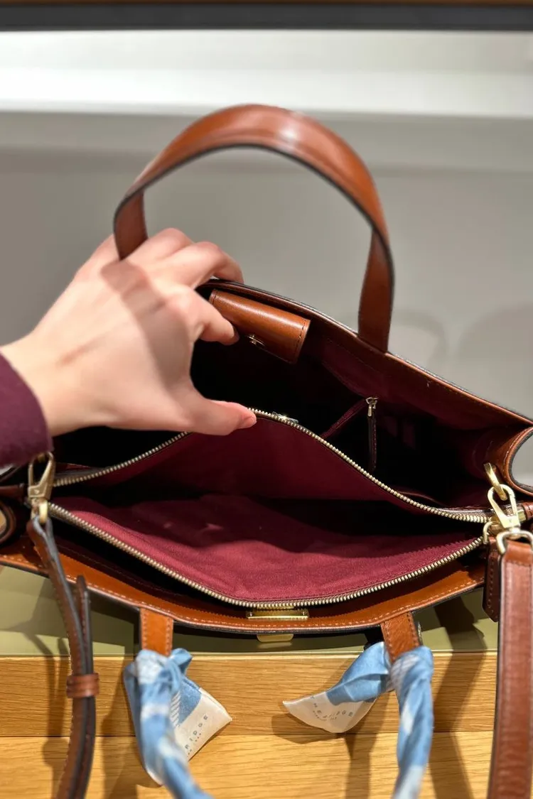 如果您正在尋找一款既能展現大氣優雅,又能陪您輕鬆出國旅遊的完美大包,這款 The Bridge 擁有流暢細緻線條的純牛皮手提包,絕對會成為您的心頭好!