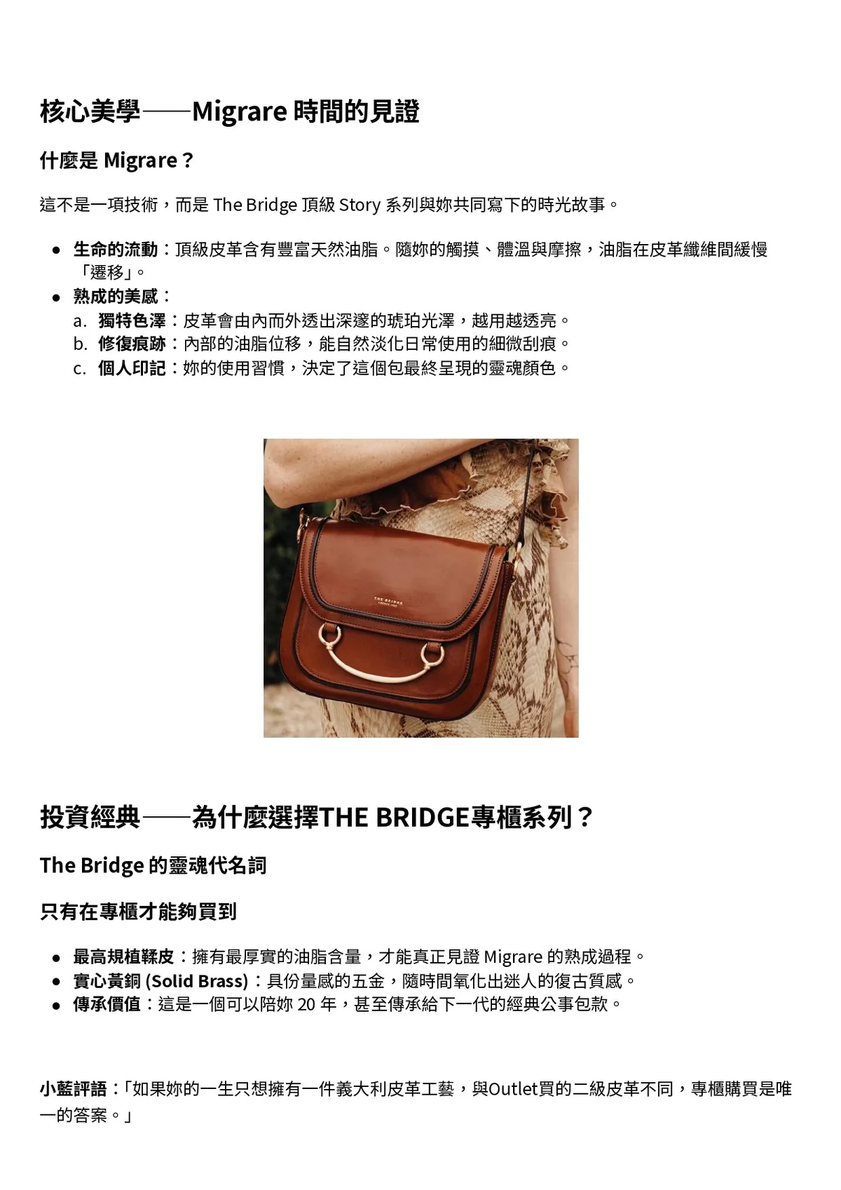 THE BRIDGE的每一款皮件,都誕生於義大利托斯卡尼大師級別的工匠之手,注定成為陪伴您一生的美麗夥伴