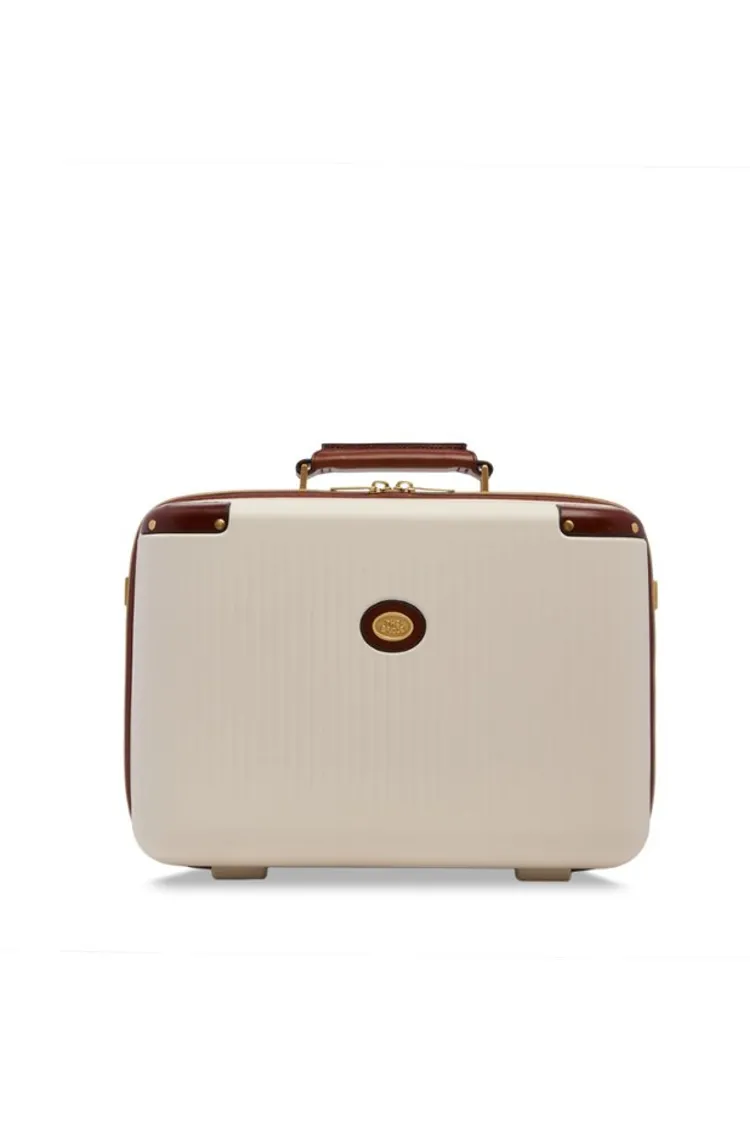 貼心採用了輕盈且耐撞的 PC(聚碳酸酯)材質,並在細節處拼接了品牌最引以為傲的頂級真皮