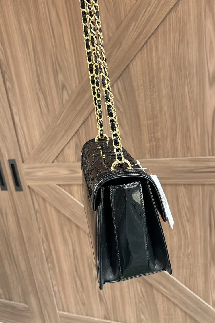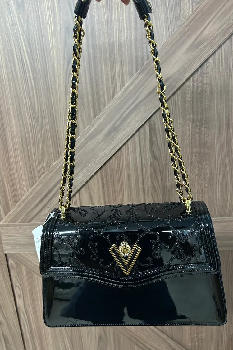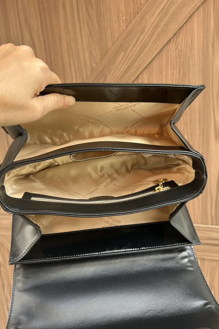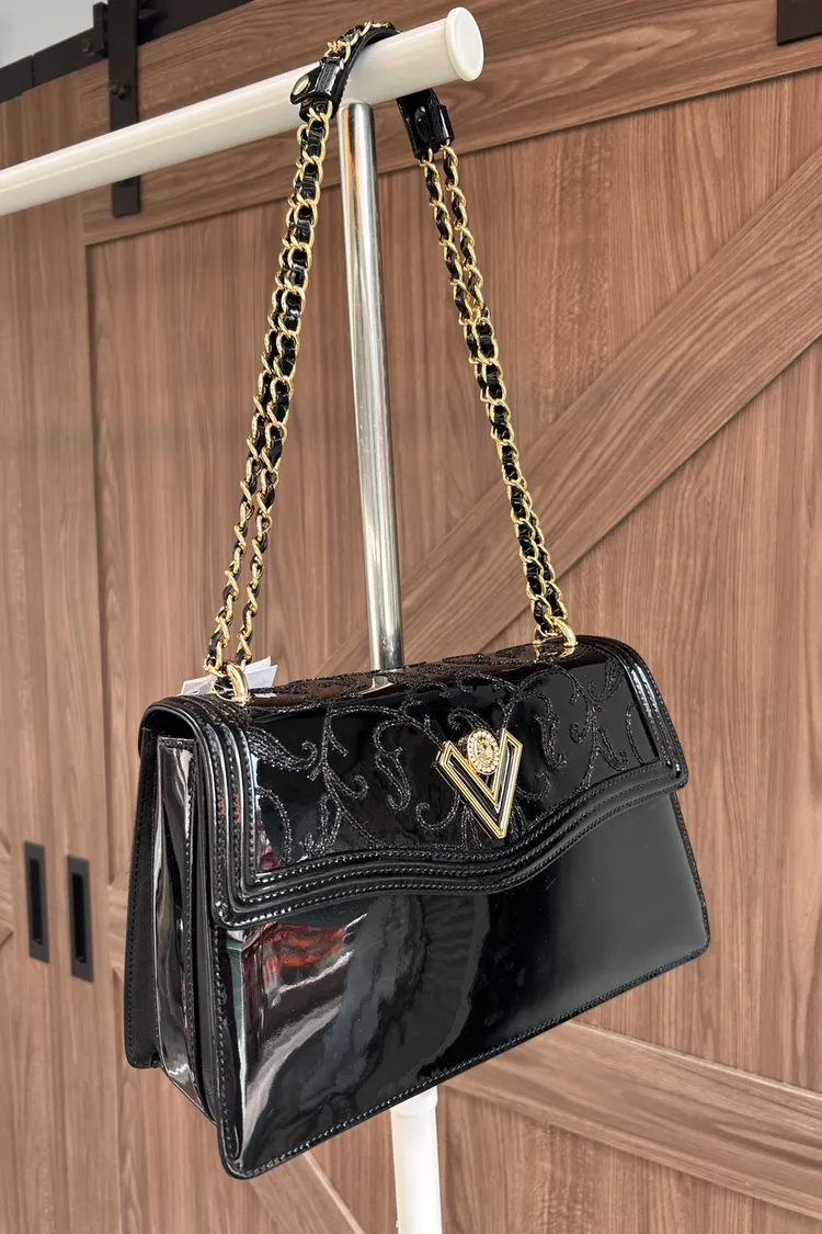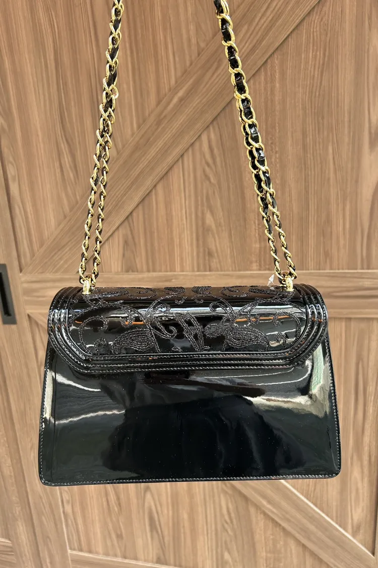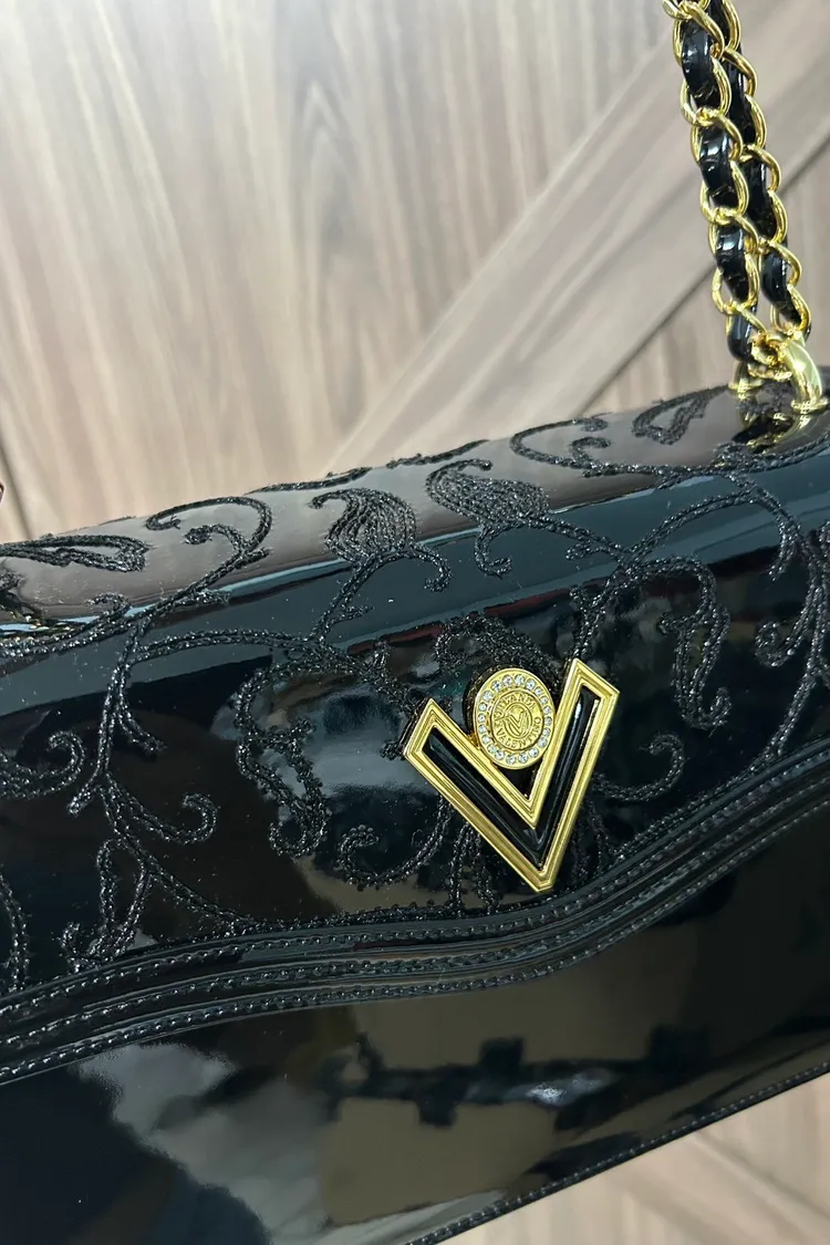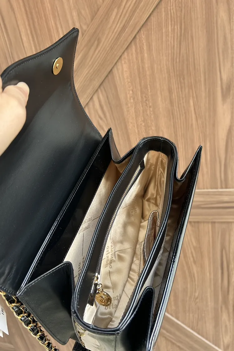 VALENTINO ORLANDI訂製-流線型翻蓋剌繡鏈條包-大