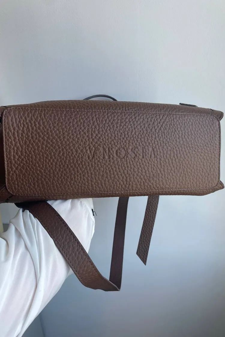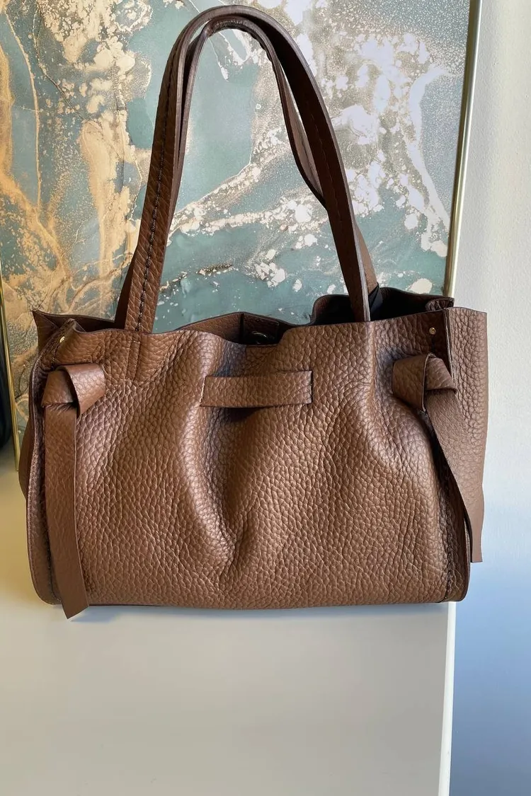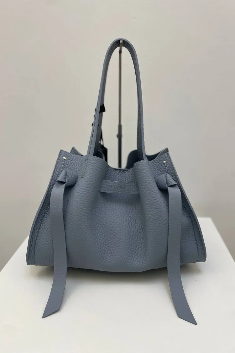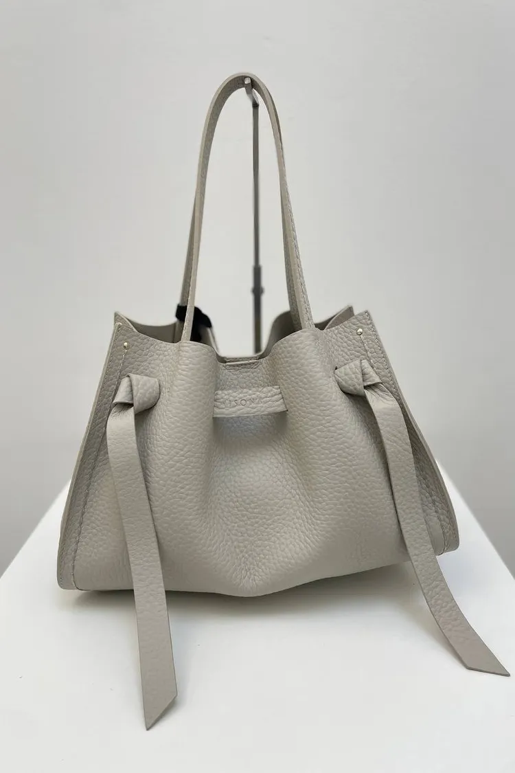 選用柔軟的雙層頭層小牛皮,呈現自然光澤與細緻觸感。包款設有可拆式肩背帶,可手提或肩背,靈活變化日常造型。